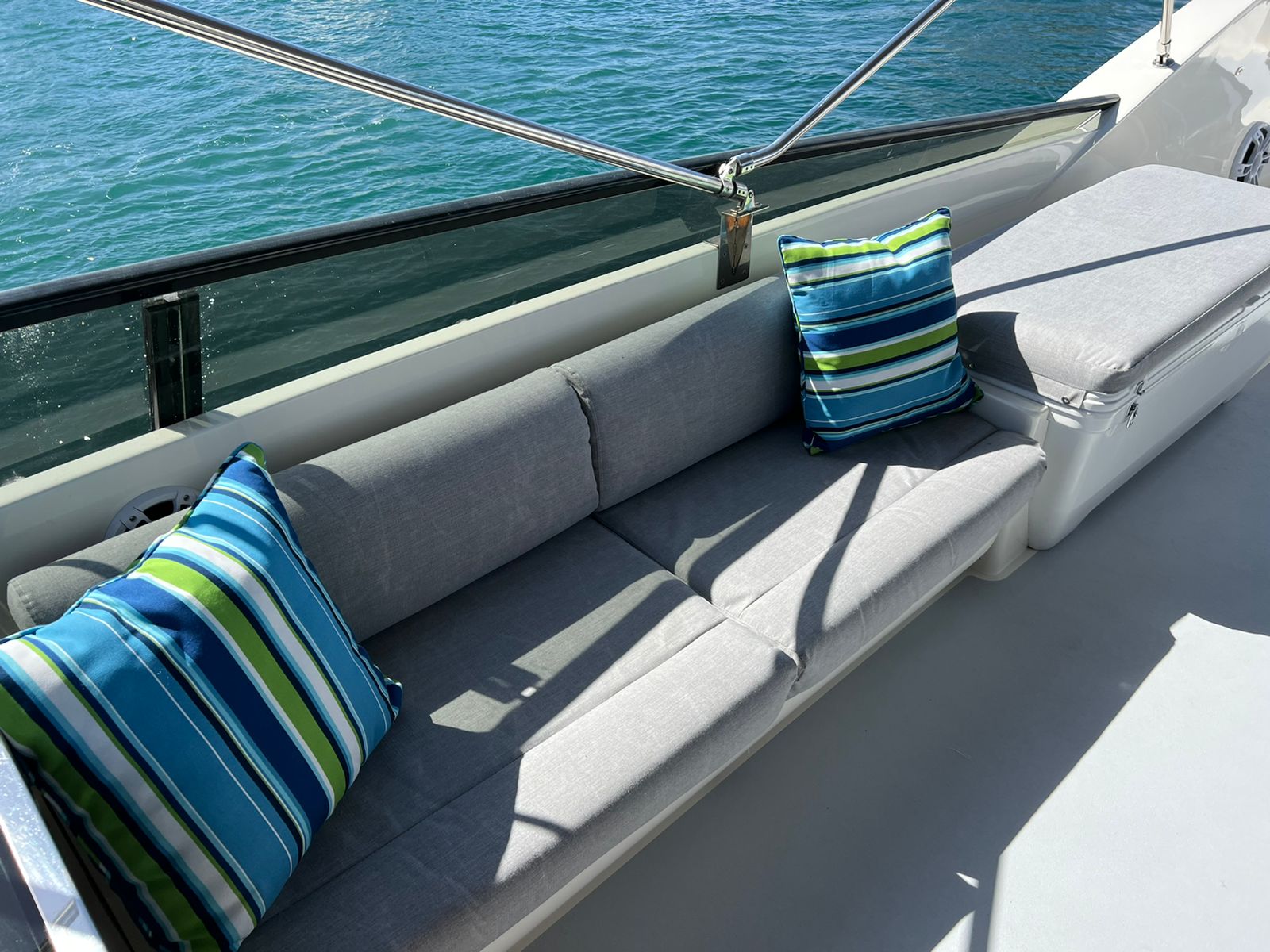 Crafted by Antago, this 93ft marvel radiates modern elegance. Its spacious main deck, fully equipped galley, and plush salon offer comfort and entertainment. Outside, find sunbathing areas and a swim platform.