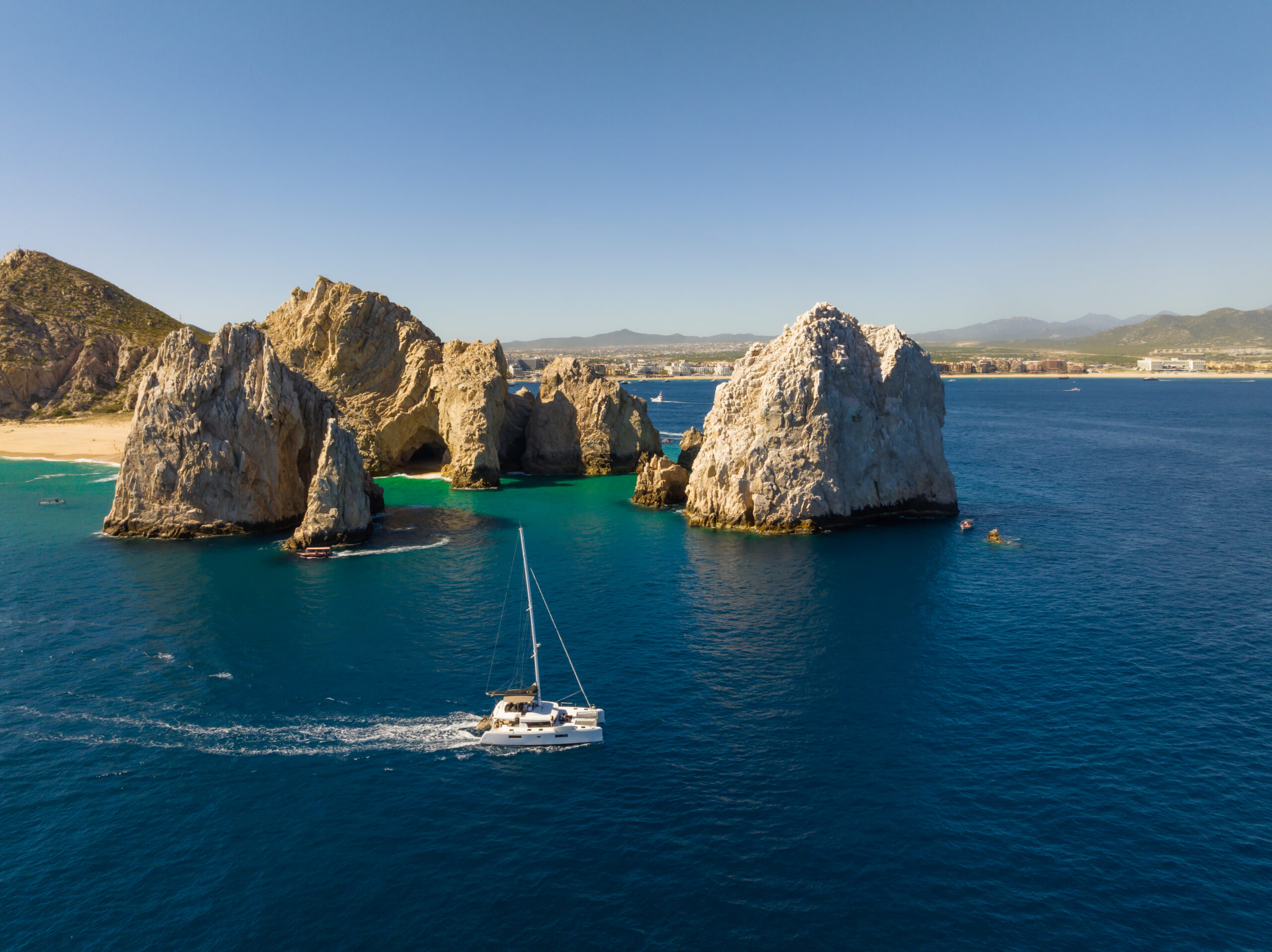 Your exclusive voyage sets sail from the Puerto Los Cabos in San Jose, where you’ll embark on your private yacht. Here, our proficient English-speaking crew takes your comfort and safety to heart, ensuring they remain their highest priority. This day promises a harmonious blend of opulence and adventure, affording you the opportunity to partake in snorkeling, indulge in sun-soaked relaxation, and savor a menu of exquisitely fresh cuisine throughout the day.