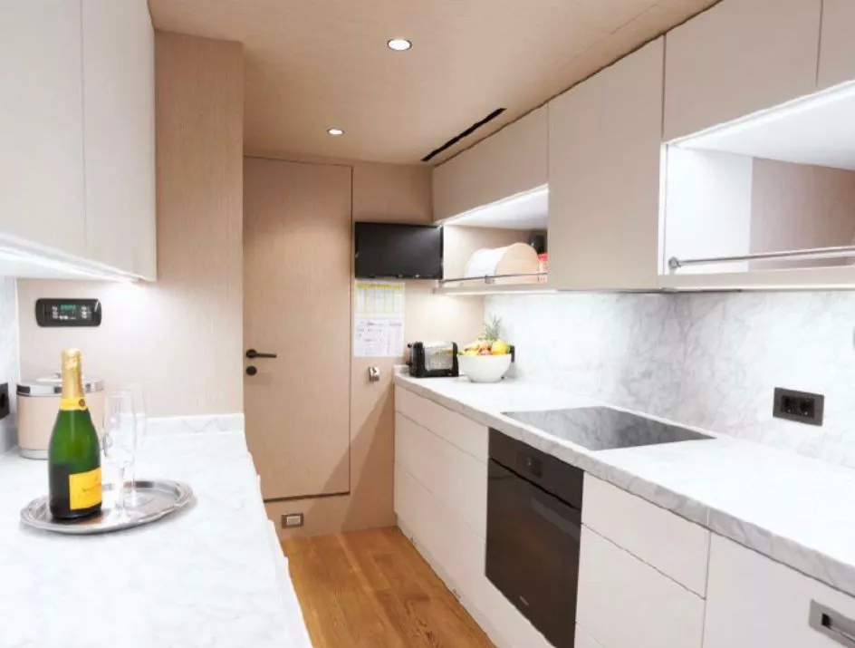 For the adventurous souls, this magnificent vessel offers an array of thrilling activities, including a 6’x16′ floating island, SeaBobs, 2 SUPs, a kayak, snorkel equipment, and more. While indulging in such luxurious fun, guests are treated to the utmost pampering, with a premium open bar and delectable restaurant-quality food options, adding an extra touch of elegance to the entire experience.